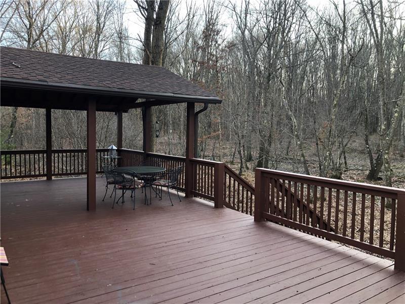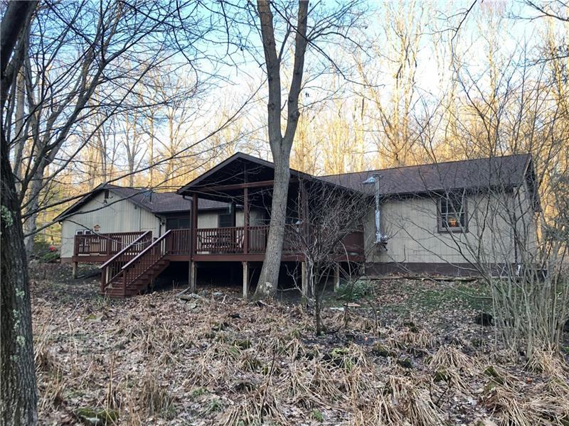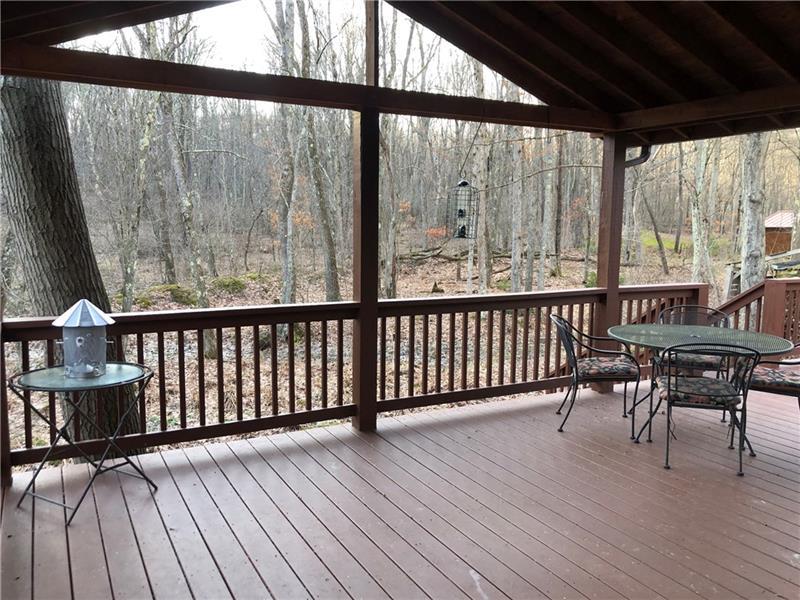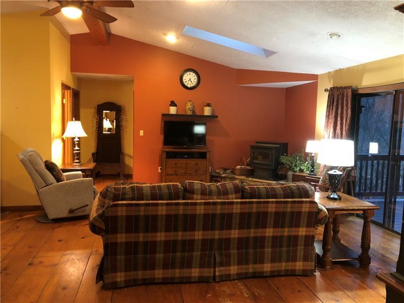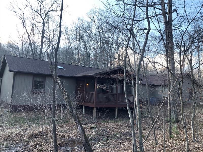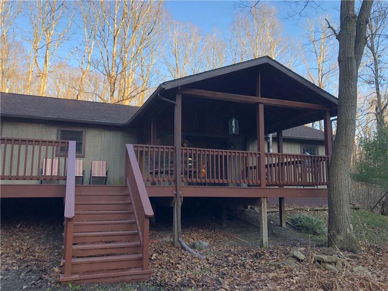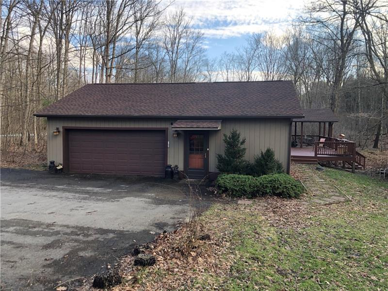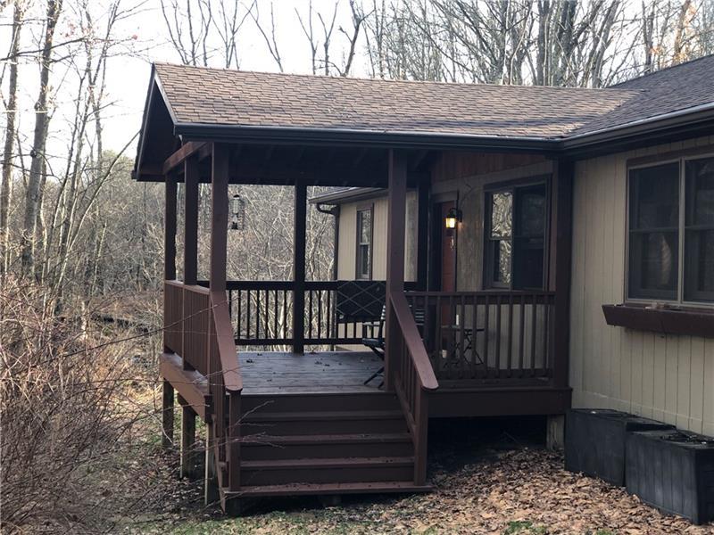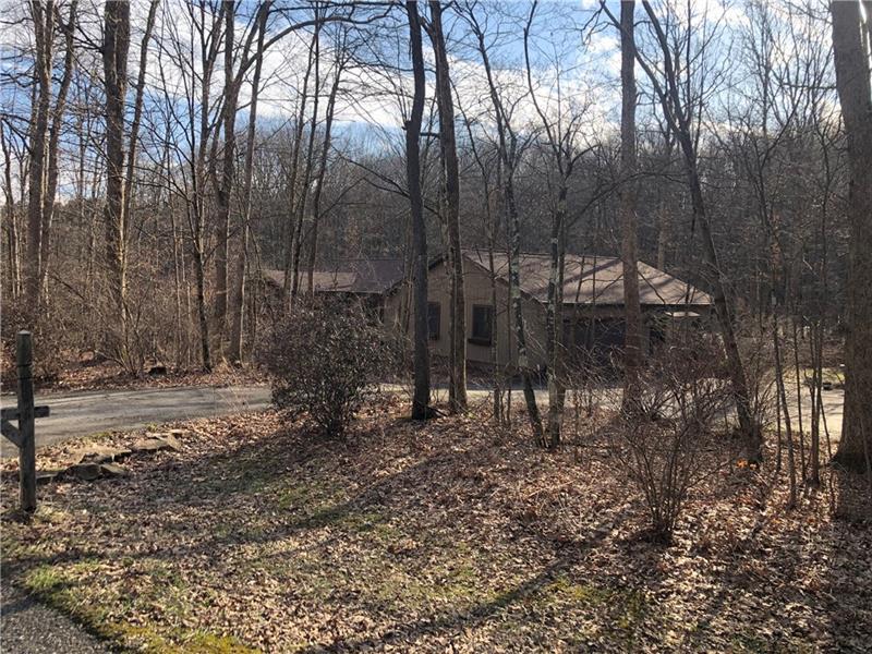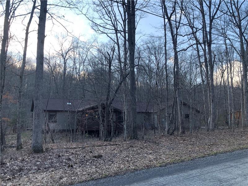 Gorgeous Mountain Ranch 4 miles from Ohiopyle State Park in lovely Jackson Woods! Perfect for your year-round living or vacation in comfort with 3 bedrooms 2 full baths, spacious main rooms and open floor plan. Hardwood floors in the vaulted living room, featuring pellet stove and open to the dining room. Walk out to a HUGE covered deck and enjoy the West Virginia Large Ferns, abundant throughout the wooded property. The large, vaulted kitchen has appliance package, breakfast bar/prep space and dining area, along with two pantry cupboards. Stream in back of lot. Master bedroom with full bath and walk in closet, separate from the other two bedrooms, a nice modern touch. Main full bath with tub/shower. Nice sized family room. New roof, heat pump and Ac. Professionally waterproofed crawlspace with commercial quality dehumidifier. Washer and dryer stay in the laundry. Large 2 car attached garage with workshop and attic storage.