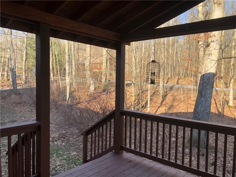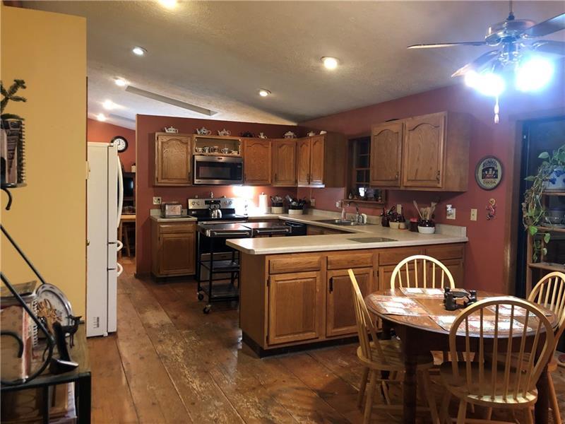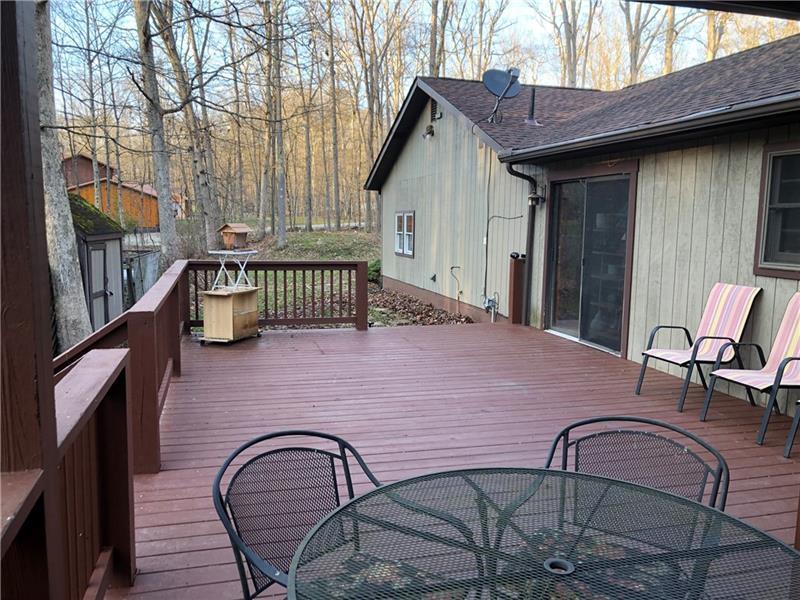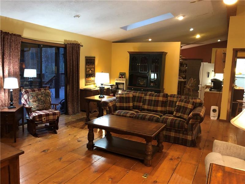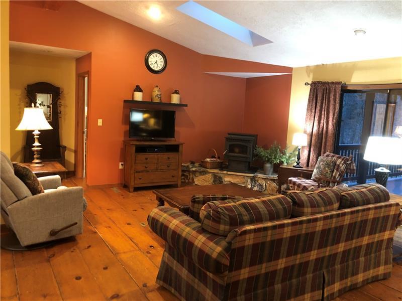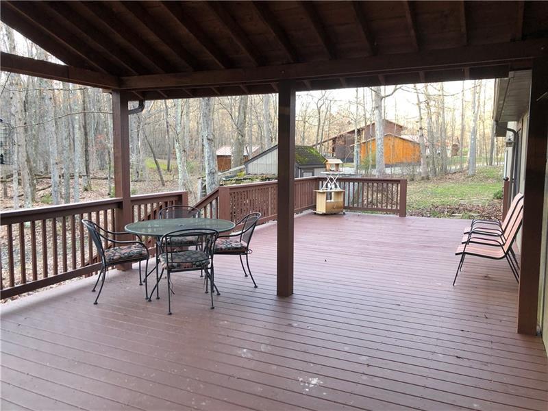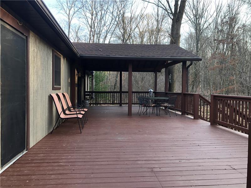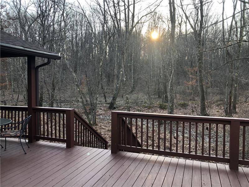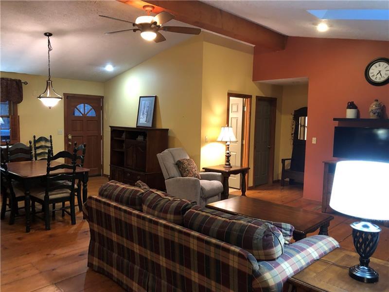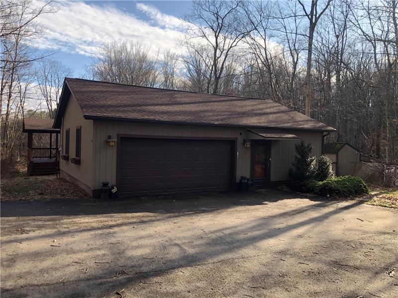 Gorgeous Mountain Ranch 4 miles from Ohiopyle State Park in lovely Jackson Woods! Perfect for your year-round living or vacation in comfort with 3 bedrooms 2 full baths, spacious main rooms and open floor plan. Hardwood floors in the vaulted living room, featuring pellet stove and open to the dining room. Walk out to a HUGE covered deck and enjoy the West Virginia Large Ferns, abundant throughout the wooded property. The large, vaulted kitchen has appliance package, breakfast bar/prep space and dining area, along with two pantry cupboards. Stream in back of lot. Master bedroom with full bath and walk in closet, separate from the other two bedrooms, a nice modern touch. Main full bath with tub/shower. Nice sized family room. New roof, heat pump and Ac. Professionally waterproofed crawlspace with commercial quality dehumidifier. Washer and dryer stay in the laundry. Large 2 car attached garage with workshop and attic storage.