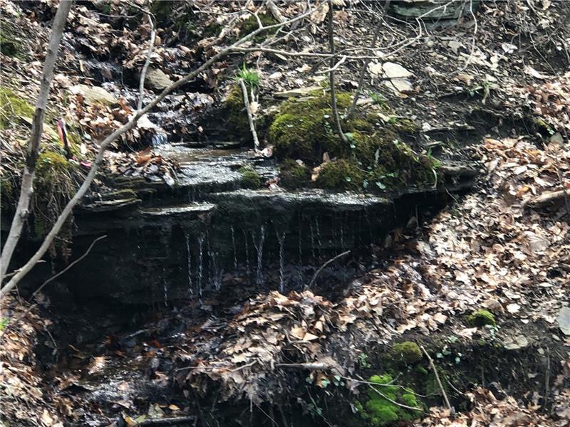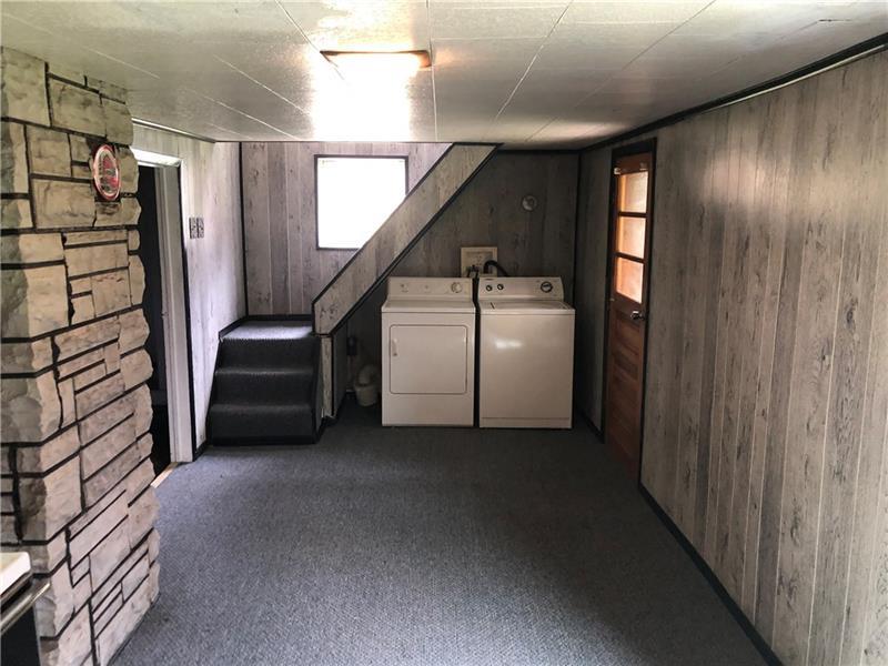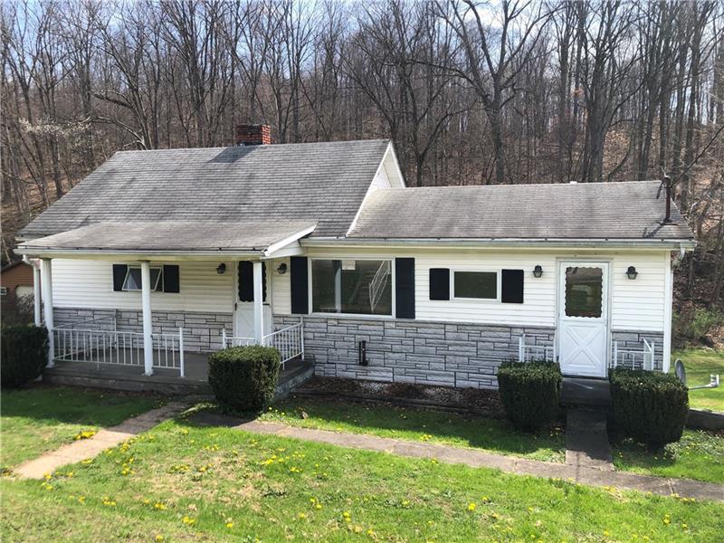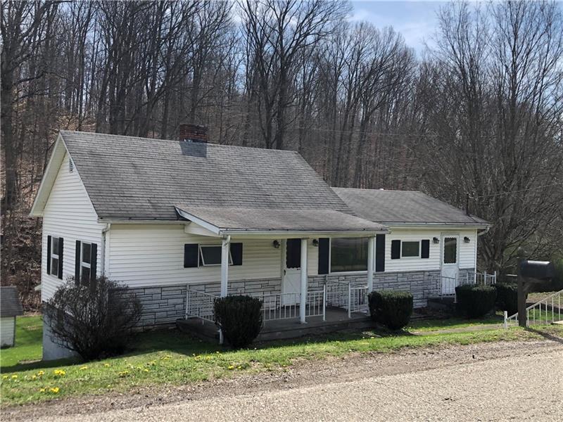 Cute 2 bedroom home in German Township on an almost an acre! Lovely country setting with a stream to enjoy in the back of the property. Main level living with a usable full basement, partly finished with a party kitchen that walks out to a covered back porch, great to enjoy the backyard from! There's a nice sized living room, two bedrooms, a den or office, or even a captive third bedroom, and a nice sized full bath with tub and shower combo. The dining room has slider doors, put a deck on and enjoy a lovely view out back. The kitchen has lots of wood cabinets, built-in seating, and comes with the stove and refrigerator. Shower in the basement and laundry, washer and dryer stay. Albert Gallatin Schools.