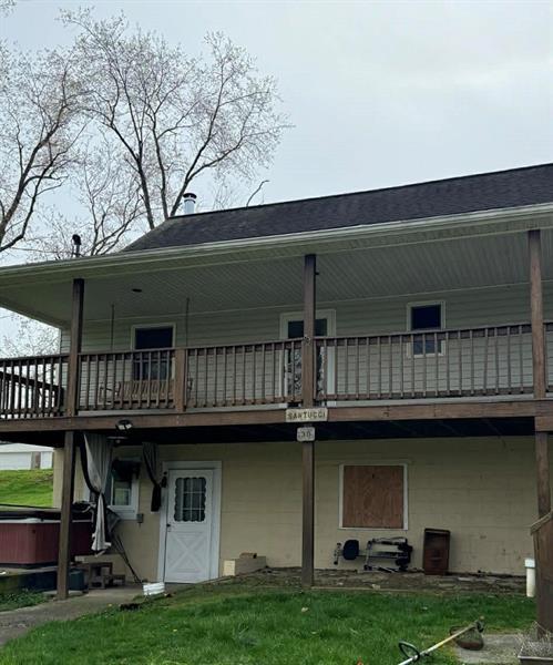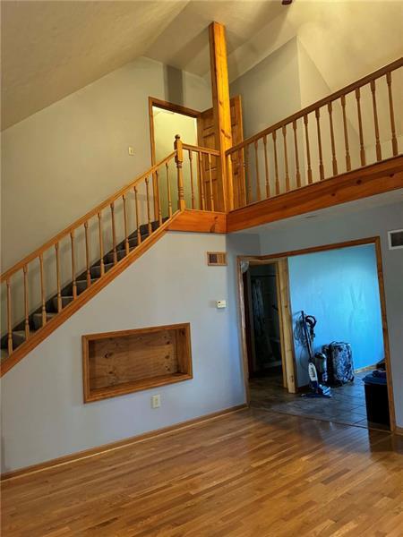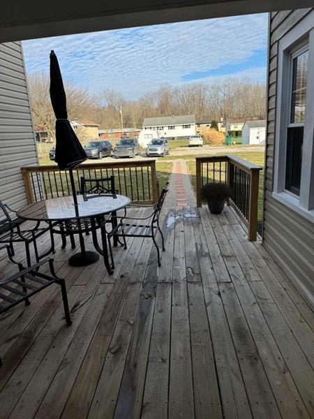 Charming 1.5-story tucked on over an acre! This home combines the convenience of main level living with the charm of a 1.5-story design boasting a flexible layout! The main floor features an open concept living area, 2 bedrooms and an equipped eat-in kitchen. The upper level loft provides flexible bonus space, ideal for a 3rd bedroom, home office or private gaming space! Covered deck, hot tub, full basement and a spacious garage, offering plenty of room for vehicles and a workshop area, too!